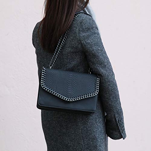 CRAZYCHIC - Borsa Tracolla Spalla Catena Donna - Borsetta PU Pelle Serpente - Patta Trapuntata Stampa Pitone - Pochette Clutch Messenger Crossbody Envelope Bag - Moda Tendenza - Nero