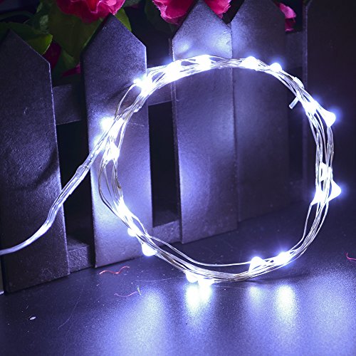 30 luci LED super luminoso bianco freddo Colore su 3 m/3 m lungo filo di rame con 4 pollici Distanza tra Lampadine LED e 13 pollici Distanza tra la prima luce ricaricabile Box.