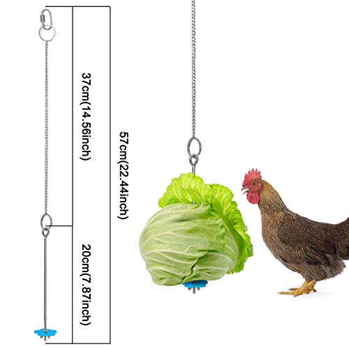 Materiale di alta qualità: alimentatore in acciaio inox, sicuro e durevole. La catena è lunga circa 37 cm e l'asta è lunga circa 20 cm. Abbastanza per spiedo cavoli, lattuga e frutta per nutrire polli o altri uccelli di grandi e medie dimensioni