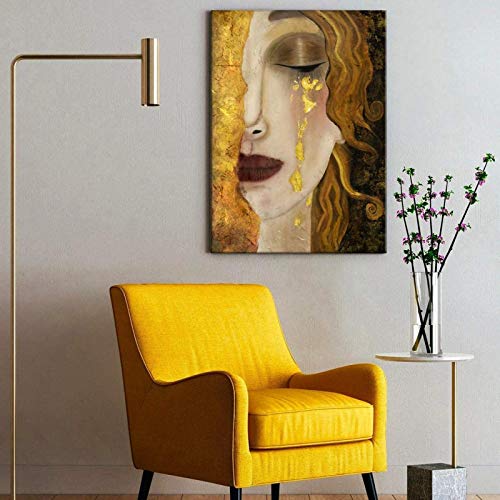 Crazystore Stampa su Tela 30x50 cm Senza Cornice Le Lacrime di Freya - Gustav Klimt, Stampa su Tela, pronta da Appendere, Allungata a Mano, Decorazioni per la casa in Tela di Cotone