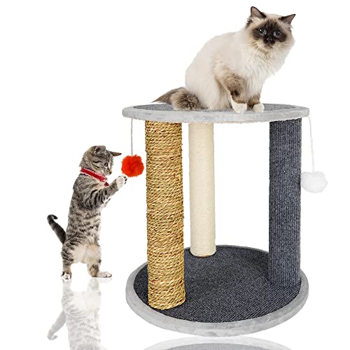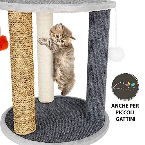 Crea - Albero Tiragraffi in juta per Gatti, Tiragraffi per Gatti in Corda di Sisal Naturale con Palla di peluche, Albero Tiragraffi Palo per Gatto. (GRIGIO E BLU, DOUBLE CARPET)