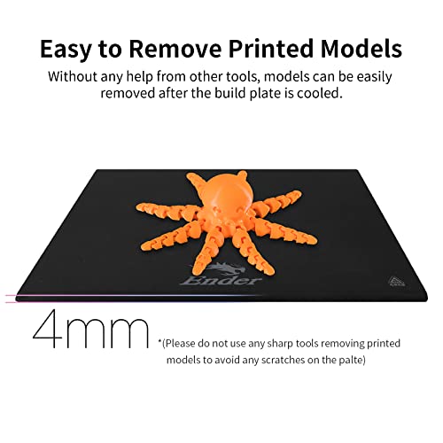 【Modello facile da rimuovere】I modelli stampati possono essere facilmente rimossi dopo che la piastra di costruzione è raffreddata senza alcuno strumento richiesto. Si prega di non utilizzare strumenti taglienti per rimuovere i modelli stampati per evitare qualsiasi graffio sulla piastra di vetro rivestita in PEI.