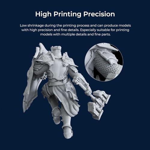 ALTA PRECISIONE E BASSO RITIRO - La resina printer è stata appositamente progettata per ridurre il ritiro del volume durante il processo di fotopolimerizzazione, garantendo un'elevata precisione del modello stampato con una finitura liscia. I modelli stampati sono proprio come opere d'arte.