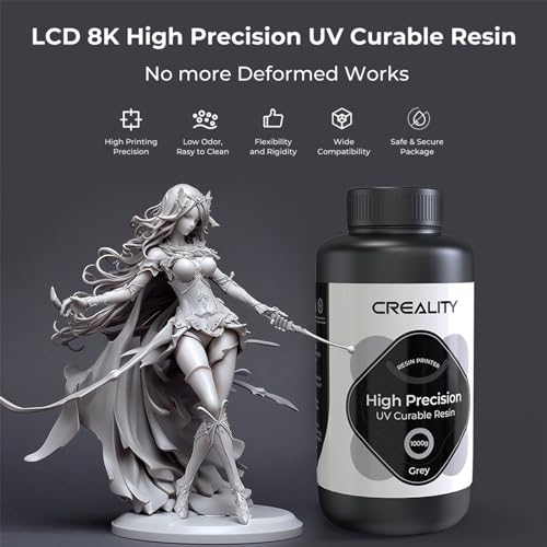 Creality Resina 8K per Stampante 3D, 1kg (2.2lbs) Resina ad Alta Precisione LCD 8K/10K/12K 405nm Resina a Polimerizzazione UV, Basso Restringimento, Modelli e Opere da Vetrina (Pelle)