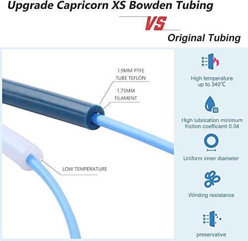 【Perfetto e durevole】 Il tubo in PTFE Capricornus è prodotto secondo le più alte specifiche di filamento da 1,75 mm. . La copertura in silicone aiuta a mantenere la temperatura dell'hot-end più stabile, mantiene pulita la testina di stampa e impedisce che il filamento si attacchi al blocco riscaldatore o all'ugello.
