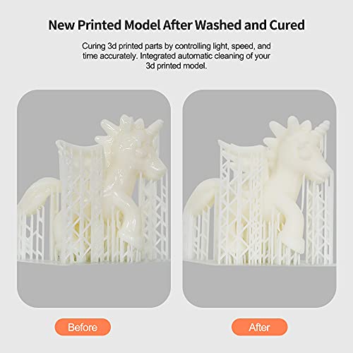 Scatola di lavaggio e polimerizzazione da 10,1 pollici: compatibile con tutte le stampanti a polimerizzazione UV SLA/LCD/DLP da 10,1 pollici e inferiori. Le dimensioni del cesto di lavaggio sono 9,4x6,2x7,8 pollici, le dimensioni di polimerizzazione 7,8x11,8 pollici. All-in-one per il lavaggio e l'indurimento, che può aiutarti in modo automatico integrato a completare la pulizia del modello di stampante 3D in resina. Polimerizzazione di parti stampate in 3D controllando con precisione luce, velocità e tempo.