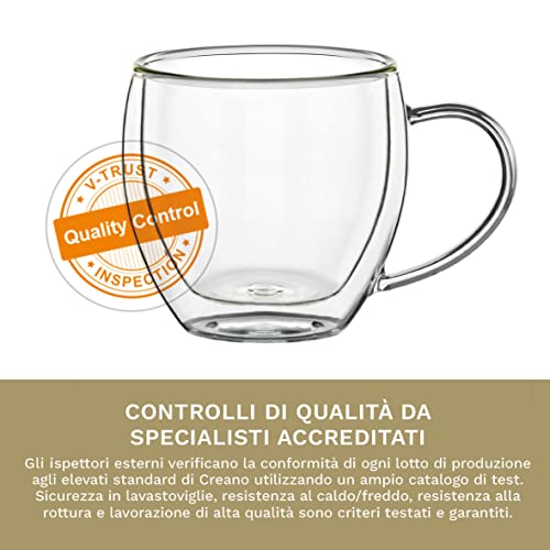 Creano Bicchieri espresso doppia parete con manico, 100 ml, tazzine moka, bicchieri termici effetto flottante 6x 100 ml 6 pezzi (confezione da 1)