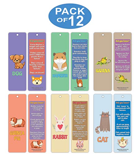 Creanoso Pet Faits amusants d'apprentissage Cartes Bookmark (12-Pack) - Set Qualité Premium - Chien, Hamster, Iguana, Guinée porc, lapin, faits de chat pour les enfants - Enseignant Récompenses et in