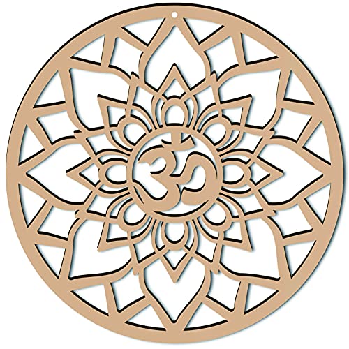 CREATCABIN Decorazione da Parete Om Lotus da 12 Pollice Decorazione da Parete in Legno Griglia di Cristallo Geometria Sacra Scultura Parete Tagliata al Laser Decorazione Appendere