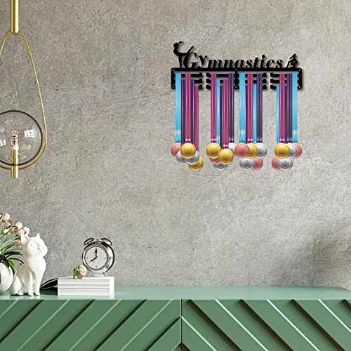 CREATCABIN Espositore Medaglie Ginnastica Appendiabiti Ginnasta Premi Sportivi Supporto Montaggio A Parete Decor Acciaio Metallo Appeso per Atleti Memorizzazione Distintivi Oltre 60 Medaglie 40x14.6cm