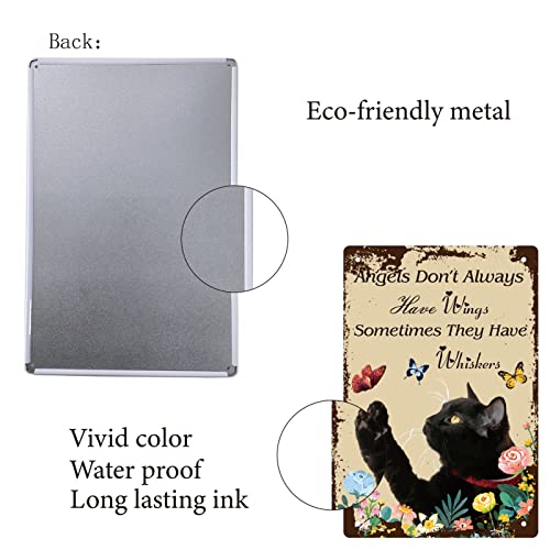 DESIGN UNICO: realistico motivo a farfalla con fiori di gatto, e le parole "gli angeli non hanno sempre le ali a volte hanno i baffi". Design professionale e corrispondenza dei colori, spruzzatura di precisione per garantire colori brillanti e pieni, il segno di latta di metallo aggiungerà un'aggiunta divertente allo spazio che appendi.