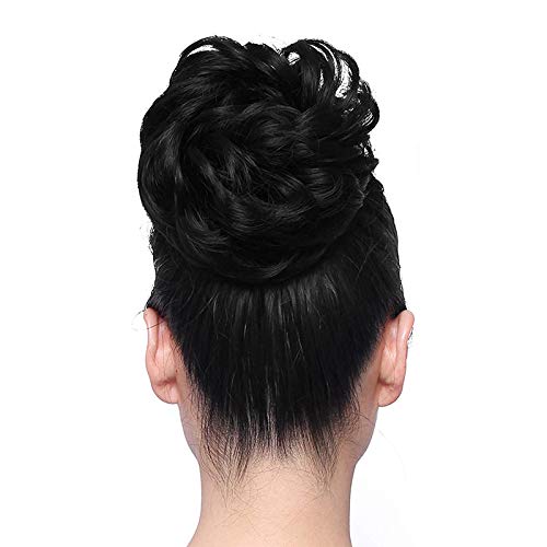 Create idea 2 pezzi nero chignon updo capelli scrunchies set ricci disordinati capelli finti chignon extension per capelli per serate, feste, incontri di ballo di fine anno