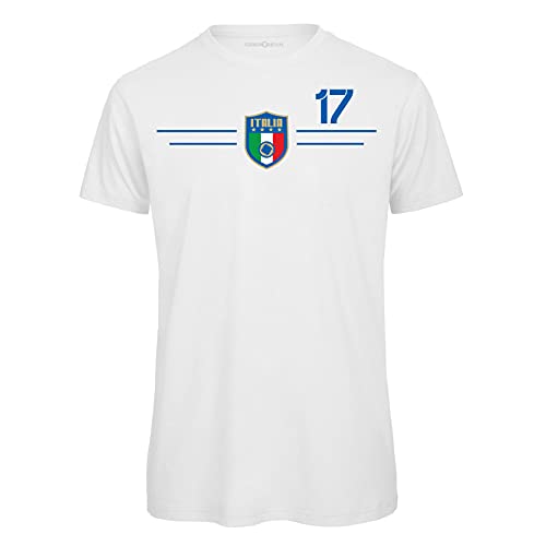 Createeva T-Shirt Uomo - Maglietta in Cotone - Maglia Forza Italia - Europei - Calcio - Nazionale Italiana - Campioni - Mondiali! (Giocatore 17 (Bianco), L)