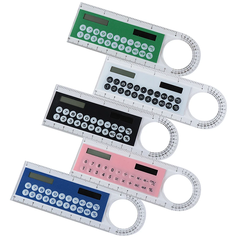 Creative 10cm Solar Mini Calculator Magnifier Fashion Multifunction Ruler School Office Supplies 1Pcs