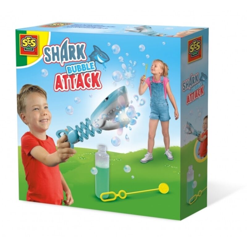 SES Creative squalo morso bolle Questo squalo con il collo estensibile morde le bolle! Attacca e cerca di catturare tutte le bolle di sapone!Soffiatore di bolle super potente: 200 mlIl soffiatore di bolle mega è facilmente lavabile dai tessuti e dalla pelleMigliora la coordinazione occhio-manoMigliora la percezione spaziale e il timingStimola l'attività fisicaStimola il gioco all'apertoDivertimento senza fineSqualo con collo estensibileBastone a bolle