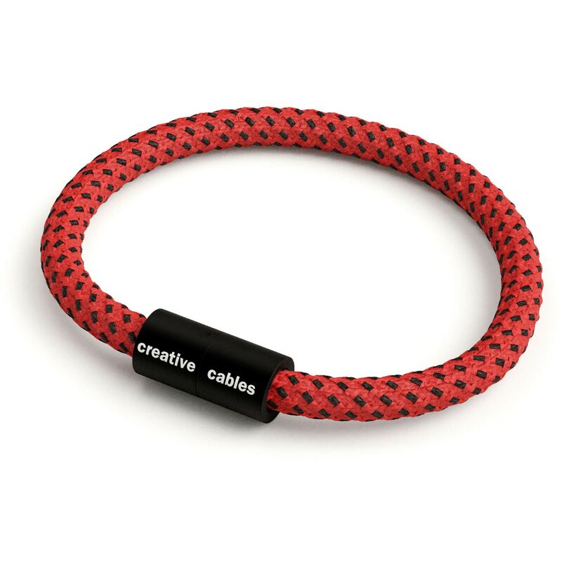 I nostri cavi sono così flessibili e belli che puoi persino indossarli. Non importa se preferisci i colori audaci, delicati, intensi, neutri, pastello o luminosi: abbiamo il braccialetto perfetto per te! Questo bracciale con chiusura magnetica nera opaca e cavo RT94 è disponibile in due diverse misure (S-18 cm e L-21 cm) ed è fatto a mano in Italia: è una bella idea regalo, specialmente se abbinato al tuo lightstyle! Braccialetto pronto da indossare realizzato con cavo tessile RT94 e chiusura magnetica nera opaca.