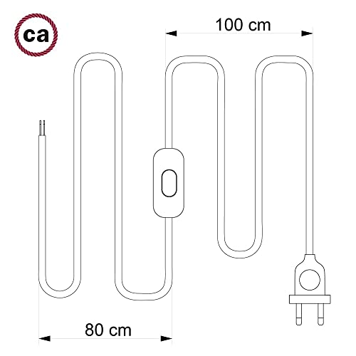 Creative cables Cablaggio per Lampada, Cavo RC35 Cotone Rosso Fuoco 1,80 m. Scegli Il Colore dell'interuttore e della Spina. - Nero