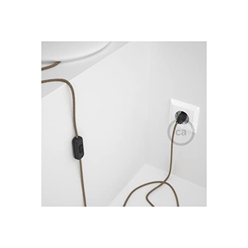 Creative cables Cablaggio per Lampada, Cavo RS82 Cotone Glitterato Marrone 1,80 m. Scegli Il Colore dell'interuttore e della Spina. - Nero