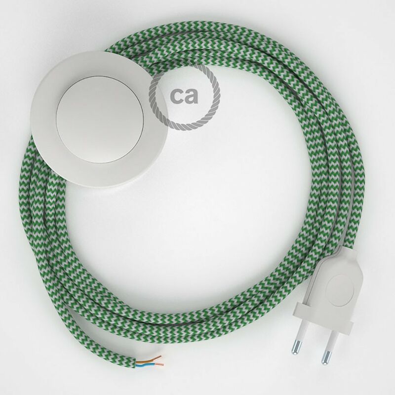 Rinnova una lampada da terra, dai nuovo colore ad una piantana grazie al cavo Rotondo in tessuto Effetto Seta RZ06 ZigZag Verde con spina e interruttore. Il cablaggio elettrico Creative-Cables per lampada da terra è assemblato in Italia partendo da componenti 100% Made in Italy per offrirti il massimo della qualità e della sicurezza. Lungo 300 centimetri, si adatta perfettamente a qualsiasi tipo di piantana. Scegli il colore dell'interruttore e della spina: - bianco, la soluzione più classica;