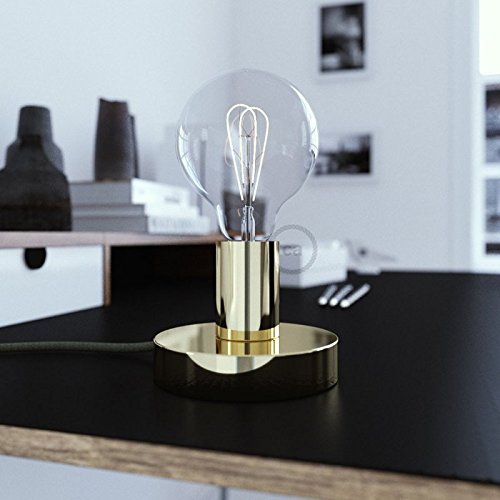 Creative cables Posaluce, la Lampada da Tavolo in Metallo ottonato, con Cavo Tessile, Interruttore e Spina a Due Poli - RL04 Glitterato Nero