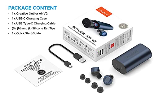 CREATIVE Cuffie in-ear TWS True Wireless Outlier Air V2 con comandi touch, diaframma in grafene, Bluetooth 5.0, aptX, AAC, 34 ore di durata totale della batteria con 12 ore per singola carica, IPX5