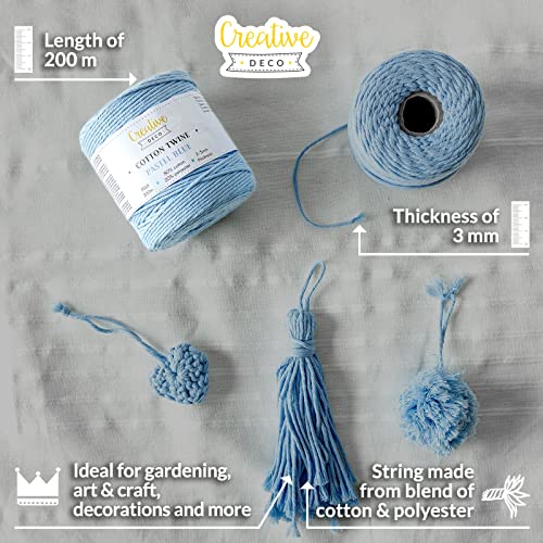 Creative Deco 200m Corda Macrame Blu Pastello | Spago di Cotone-Poliestere | 656 Piedi | Spessore 2-3mm | Grande Corda Spessa Forte | Perfetta per Avvolgere i Regali. Progetti Fai da Te Artigianato