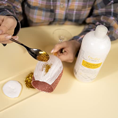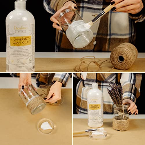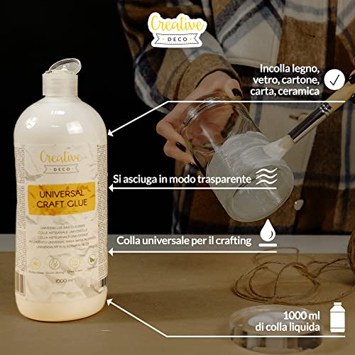 Creative Deco 1L Bianca Colla PVA Universale Liquida Artigianale | per Tessuti Carta Cartone Legno Vetro Pelle Ceramica Feltro | Non Tossica | Asciugatura Rapida Trasparente | Progetti Artistici