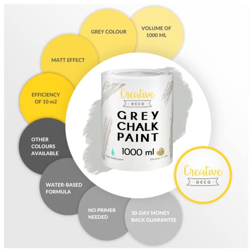 Creative Deco Chalk Paint Vernice a Gesso Grigio | 1L | Vernice per Legno | Pittura per Mobili senza Carteggiare, Opaca, Lavabile | Perfetta per Restauro di Mobili, Colore per Legno e Decorazione