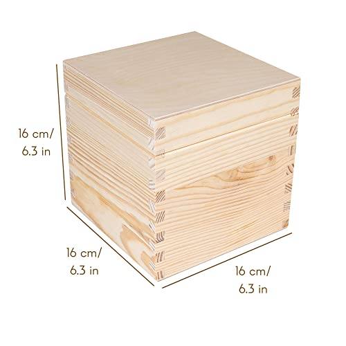 Creative Deco Quadrato Scatola in Legno con Coperchio | 16 x 16 x 16 cm +/- 1 cm | Scatole Cassetta Conteniore Portaoggetti Portagiochi Cofanetto | Perfetta per Decoupage Documenti Giocattoli Attrezzi