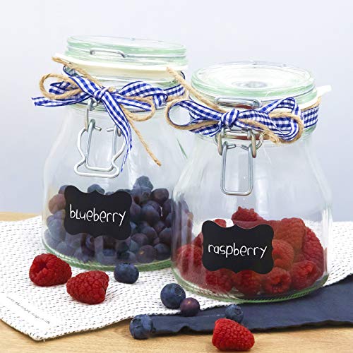 SET GRANDE - Confezione da 160 etichetta lavagna in 40 fogli (formato 50 mm x 35 mm). Le etichette di forma arrotondata e il gesso incluso (si puo usare anche pennarelli gesso liquido). Grazie alla quantità di etichette in pacchetto, è sicuro che non finiranno le nostre belle etichette nere per barattoli.