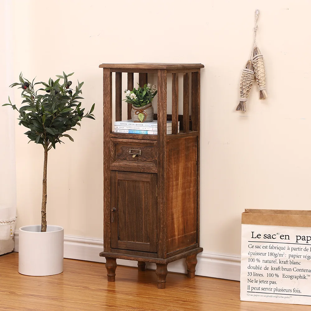 Creative Nordic simple solid wood furniture bedroom bedside cabinet paulownia furniture retro style living room storage table