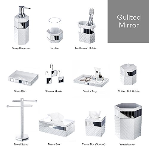 Creative Scents - Set di 4 accessori da bagno con dispenser per sapone, portaspazzolino da denti, bicchiere e portasapone, idea regalo Quilted Mirror