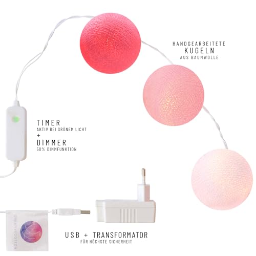 ILLUMINAZIONE INTELLIGENTE E DUREVOLE - Grazie al timer integrato con funzione di memoria, la nostra lampada dimmerabile a palle di cotone si accende e si spegne automaticamente all'ora da te stabilita.