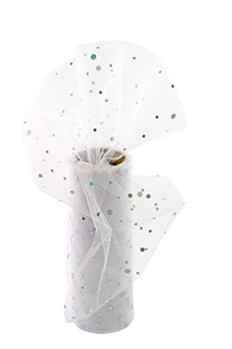Nastro in tulle con paillette 15 cm di larghezza, 9 m di lunghezza su rotolo. Marca: Creativery.