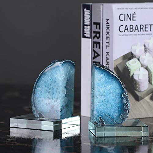 Creativi Fermalibri Fermalibri in agata blu per libri pesanti 1 paio 1.53 kg / 3.37 lb Fermalibri per scaffali Fermalibri in pietra naturale agata con Fermalibri per Mensole Paese di origine Cina
