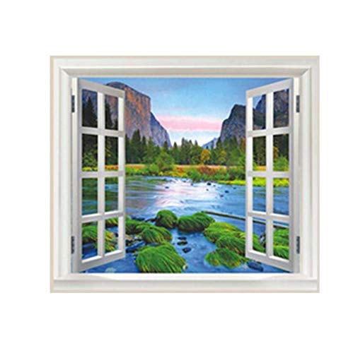 Creativo Adesivo 3D Finestra Finta Isola Di Montagna Fiume Sfondo Adesivi Murali Rimovibili Murali Soggiorno Decorazione Domestica 90X60Cm
