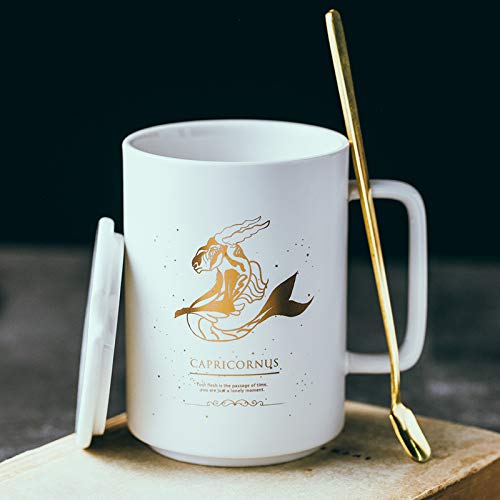 Creativo Constellation bianco Tazza in ceramica con coperchio Cucchiaio personalità tendenza coppia caffè latte calix tazza per acqua domestica Capricorno