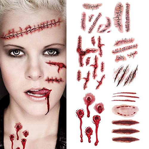 4. Godetevi la festa di Halloween: le cicatrici finte sono perfette per feste di Halloween, feste di trucco zombie, feste di tatuaggio di morso di vampiri, feste in maschera dell'orrore, feste divertenti ecc.