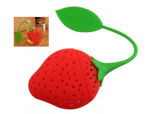 Creativo e Lovely Red Strawberry silicone Bustine di tè Colino con una foglia