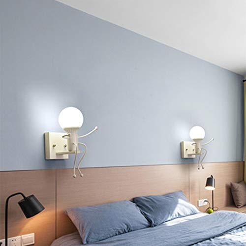 Creativo Vintage Lampada da Parete Applique Lampada a Muro Industriale Retro Ferro Art Cartone animato Design E27 per Bar Bambini Camera da Letto Cucina Ristorante Caffè Corridoio Loft (Bianco)