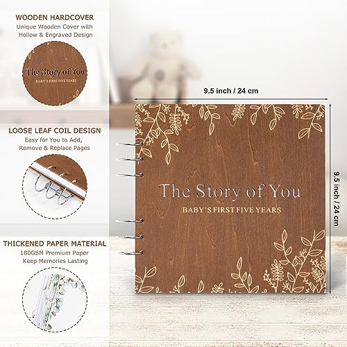 Creawoo Libro in Legno dei Ricordi del Bambino, Diario della Gravidanza, Diario dei Primi 5 Anni del Bambino Album Fotografico per Mamme in Attesa, Papà, Nuovi Genitori, Regalo Ricordo per Baby Shower