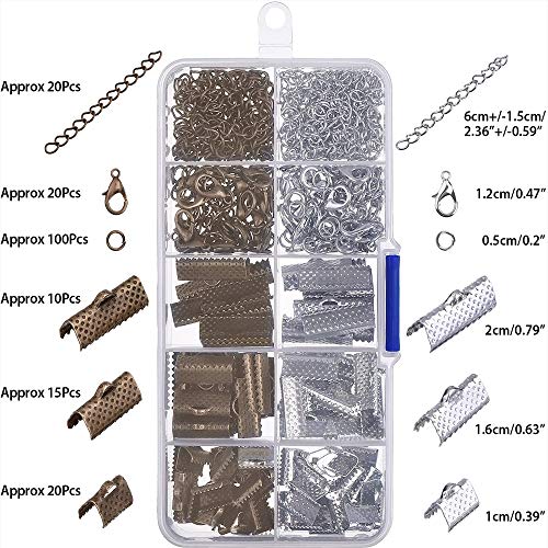 Kit per Creazione Gioielli,370 Pezzi Accessori per La Creazione di Gioielli,Chiusure per Gioielli Fermagli,Aragosta Clasps Chiusure Lobster,con Catene di Prolunga,per Nastro Girocollo Fai-da-Te