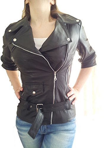 Creazioniinpelle chiodo giubbotto vera pelle nappa donna xs s m l xl xxl moto biker giacca made in italy (xs)