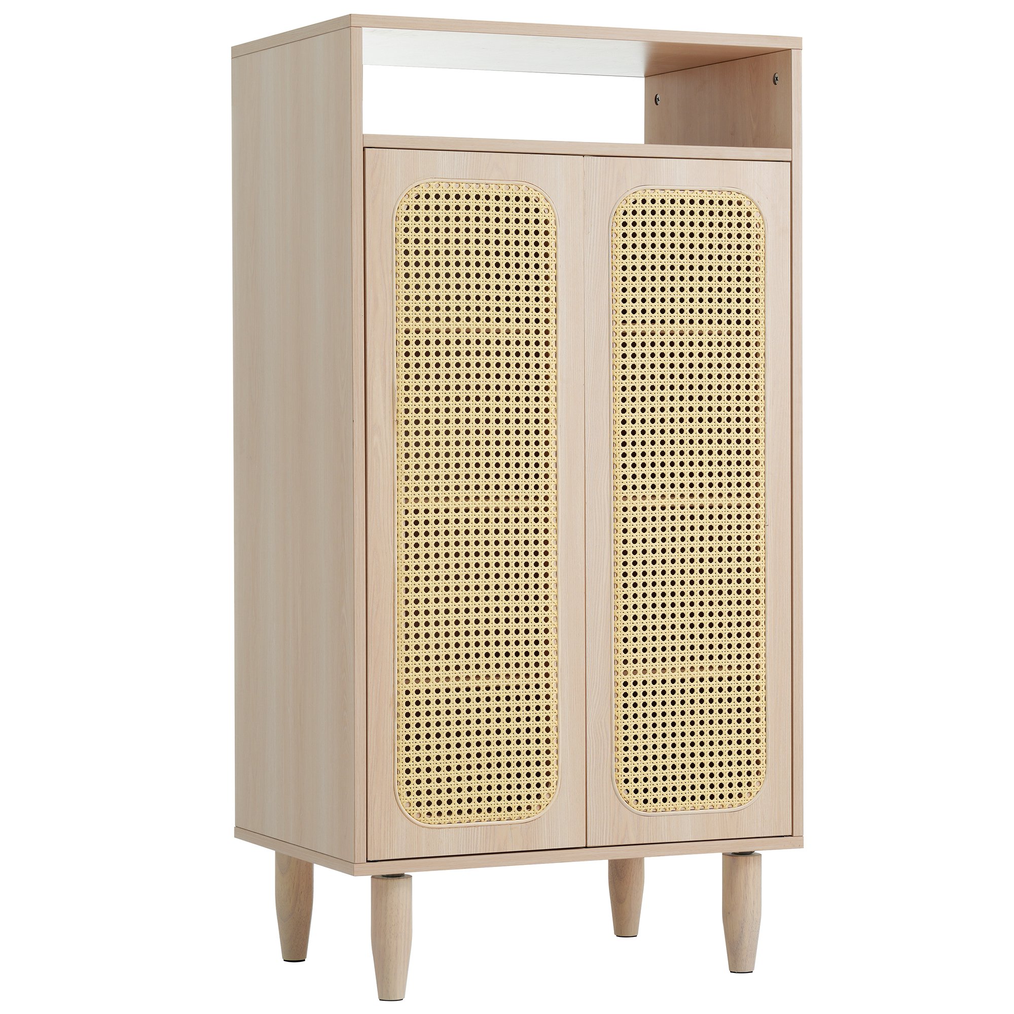 Scoprite l'eleganza senza tempo dell'Highboard in Legno, alto 115 cm, che unisce funzionalità e stile in ogni dettaglio. Con le sue porte in rattan traspirante, non solo offre un ampio spazio di stoccaggio, ma aggiunge anche un tocco di naturale bellezza al vostro spazio abitativo. All'interno, troverete tre ripiani regolabili, perfetti per organizzare oggetti di diverse dimensioni, mentre l'apertura superiore offre ulteriore spazio accessibile per i vostri oggetti più utilizzati. Il design raffinato in finitura legno e la praticità delle sue porte facilmente apribili con una leggera pressione, rendono questo mobile un complemento ideale per arricchire con stile e funzionalità ogni ambiente della casa.