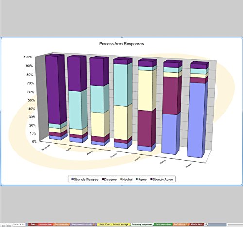 Shows your organization instant insight in areas for improvement: Auto generates reports, radar chart for maturity assessment, insights per process and participant and bespoke, ready to use, RACI Matrix