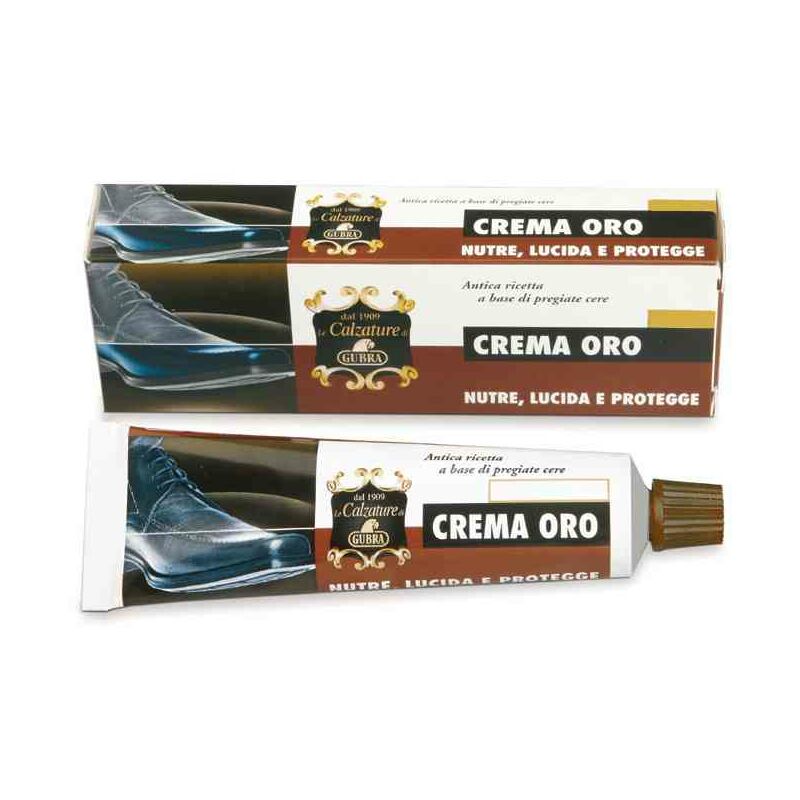 1,0 PZ Di CREMA ORO CALZATURE 50 ML MARRONE SCURO a base di pregiate cere la cui speciale formulazione la rende ideale per nutrire, lucidare, proteggere e rinnovare le calzature. Tubetto da 50 ml Colore marrone