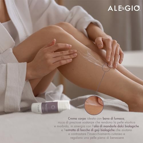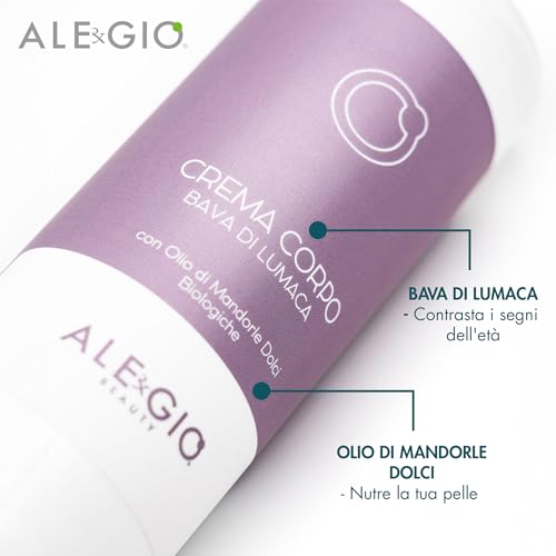ALE&GIÒ Crema Corpo Bava di Lumaca - olio di mandorle dolci biologiche, estratto di bacche di goji biologiche, pelle elastica e morbida, contrasta l'invecchiamento cutaneo