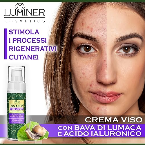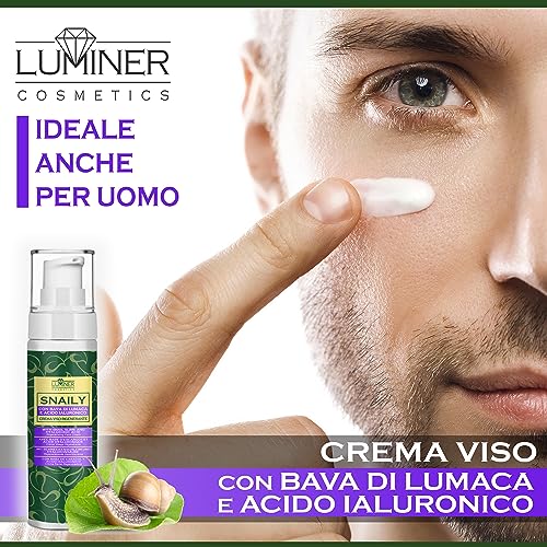Crema Viso Bava di Lumaca 100ml, Crema Viso Antirughe Idratante con Bava di Lumaca al 70% e Acido Ialuronico Puro, Formula Naturale ad Azione Antimacchia e Antietà con Vitamina C LUMINER