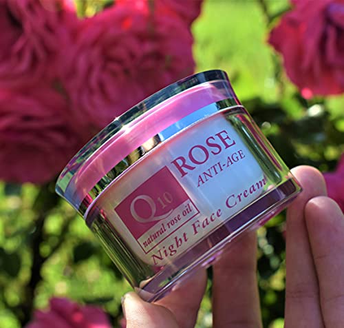 Crema Viso Notte Antirughe con Coenzima Q10, Olio Naturale di Rosa e Vitamina E, Formula Anti Age, Nutriente, Senza Parabeni e Senza Conservanti 50ml
