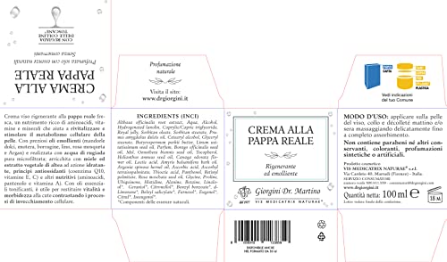 Crema viso rigenerante alla pappa reale fresca, un nutrimento ricco di aminoacidi, vitamine e minerali che aiuta a rivitalizzare e stimolare il metabolismo cellulare della pelle.